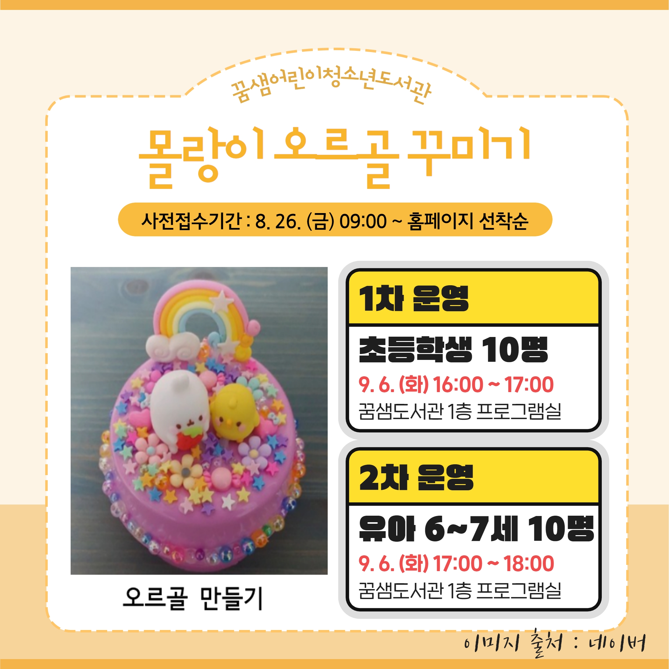 [독서의달] 몰랑이 오르골 꾸미기 (1차) / 2022. 09. 06 ~ 2022. 09. 06