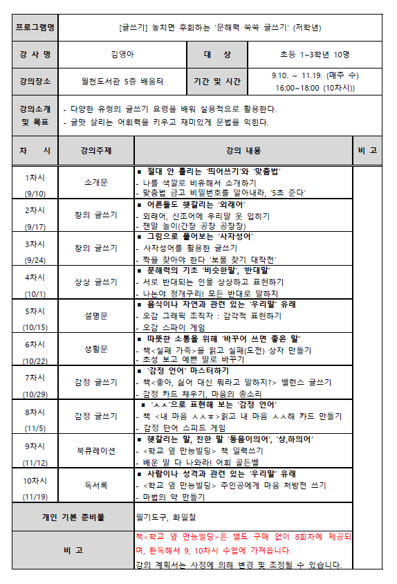 놓치면 후회하는 문해력 쑥쑥 글쓰기(초등 저) / 2025. 09. 10 ~ 2025. 11. 19
