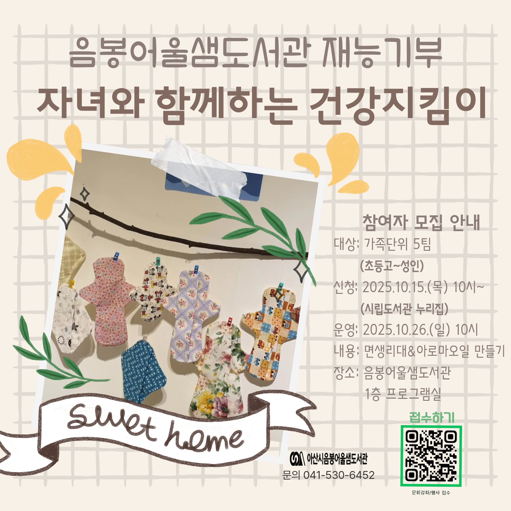 [재능기부]자녀와 함께하는 건강지킴이(면생리대, 아로마 오일 만들기) / 2025. 10. 26 ~ 2025. 10. 26