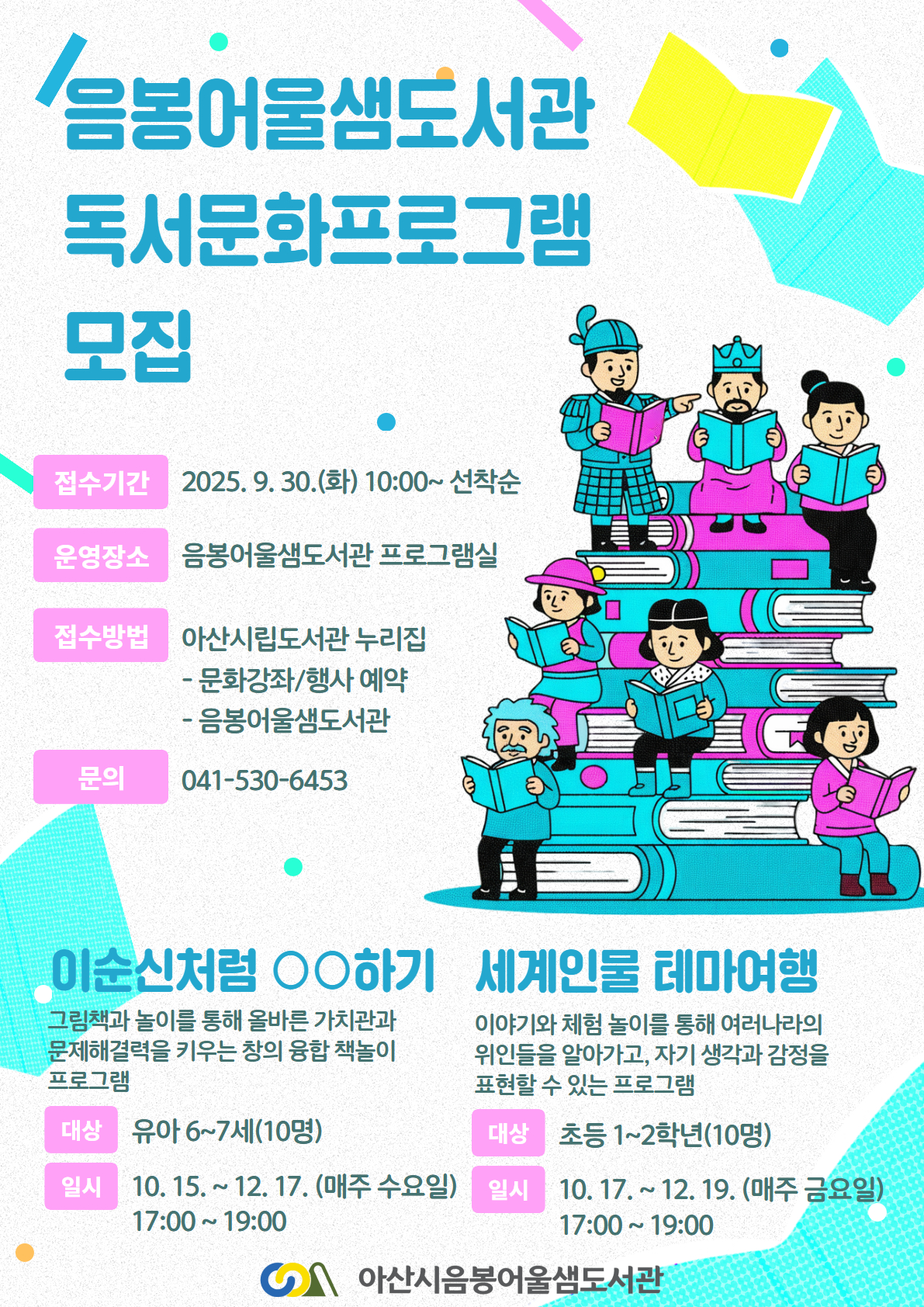 음봉어울샘도서관 독서문화프로그램 추가 프로그램 안내