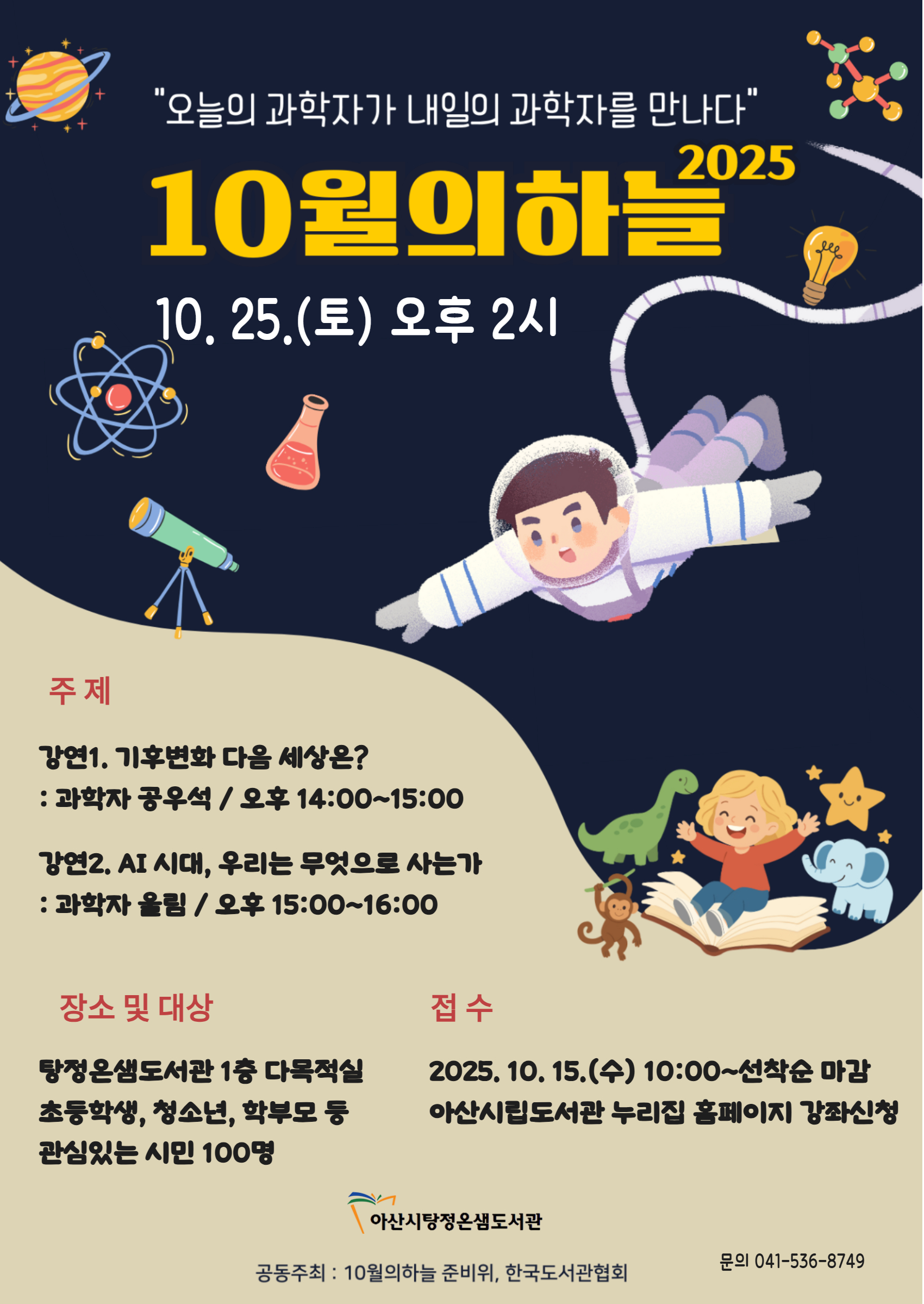 탕정온샘도서관 10월의 하늘(과학자 재능기부 강연) 행사 안내